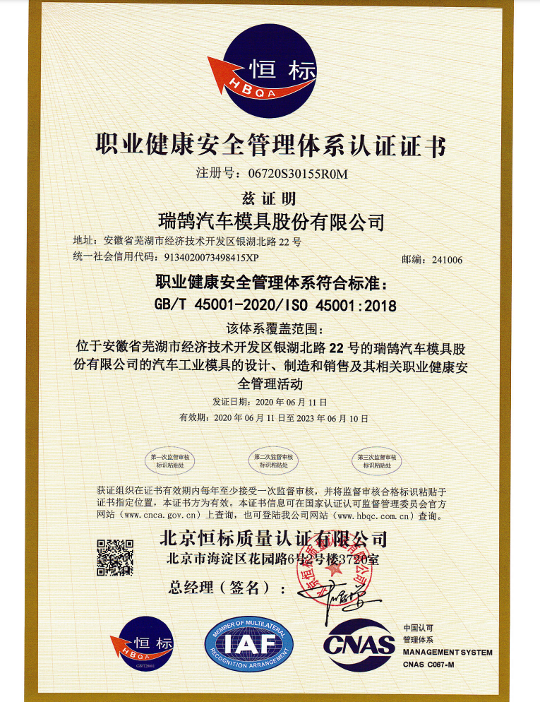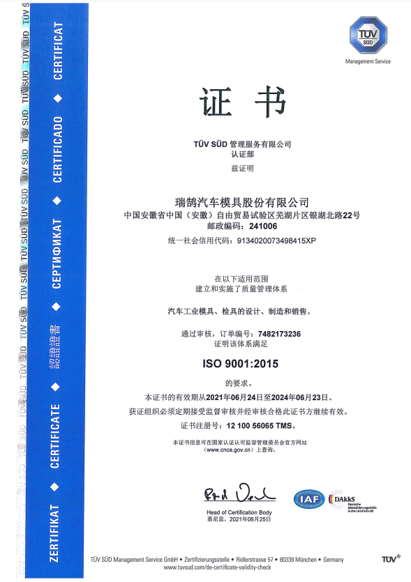 ????????瑞鵠汽車模具股份有限公司成立于2002年3月,坐落于中國(安徽)自由貿(mào)易試驗(yàn)區(qū)蕪湖片區(qū)銀湖北路 22 號(hào),股本數(shù)18360萬,公司的主營業(yè)務(wù)為汽車沖壓模具、檢具及焊裝自動(dòng)化生產(chǎn)線的開發(fā)、設(shè)計(jì)、制造和銷售,主要產(chǎn)品有沖壓模具(覆蓋件模具、高強(qiáng)板模具)及檢具、焊裝自動(dòng)化生產(chǎn)線、一體化鋁壓鑄零部件,為國內(nèi)少數(shù)能夠同時(shí)為客戶提供完整的汽車白車身高端制造裝備、智能制造技術(shù)及整體解決方案的企業(yè)之一。
